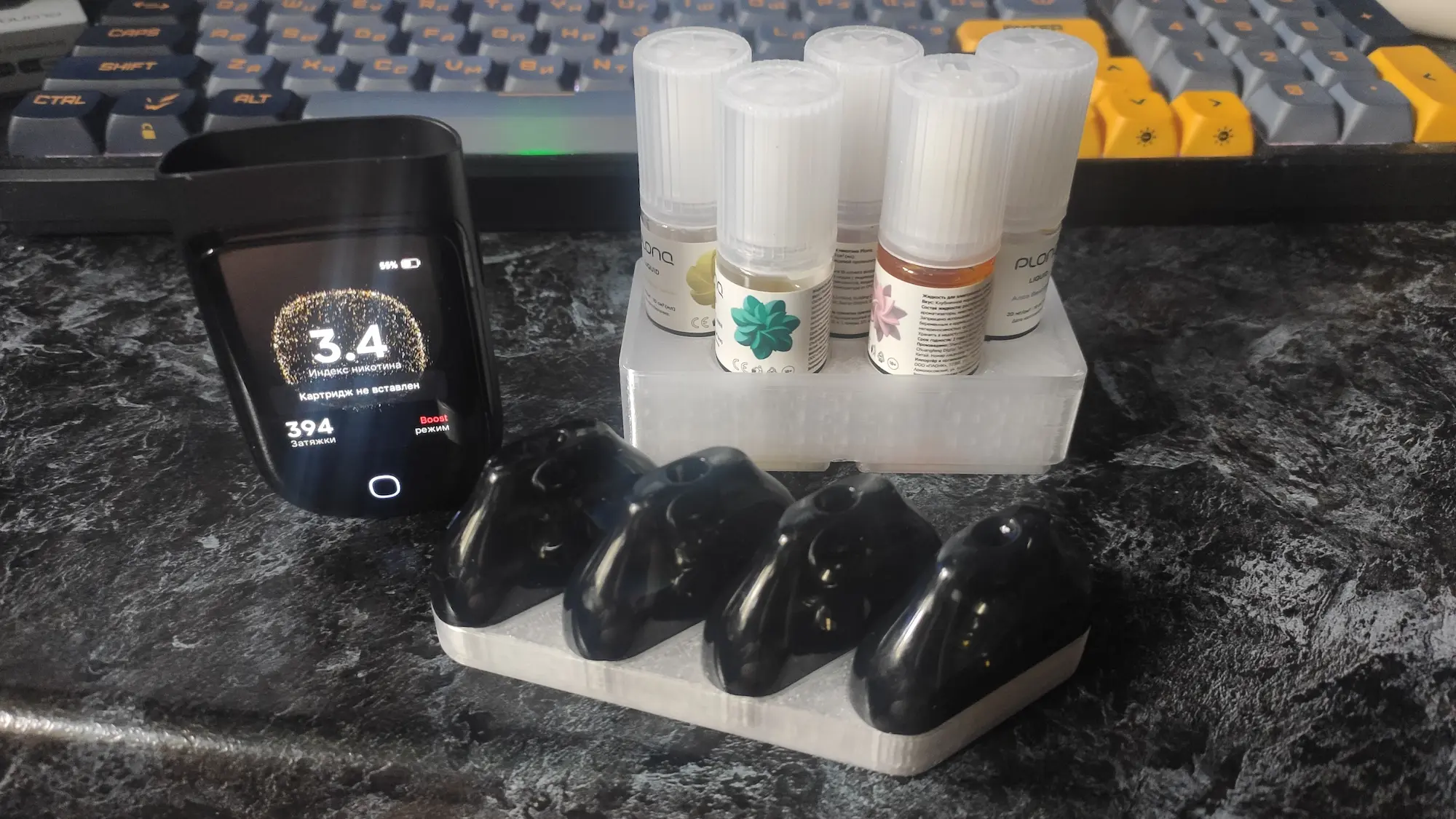 Классное маленькое устройство. Крепкие магниты для картриджей. Удобная статистика, но можно добавить больше метрик. Дисплей крепкий, царапинки собирает но неглубокие. Из минусов мягкий пластик собирает царапины и местами уже облазит. Устройству месяц живет в кармане с телефоном. Маленькая батарейка, у меня без подзарядки день не держит, но это вполне обусловлено размерами. Иногда неинтуитивно ведет себя тачдисплей, тригерится горизонтальный свайп вместо вертикального.