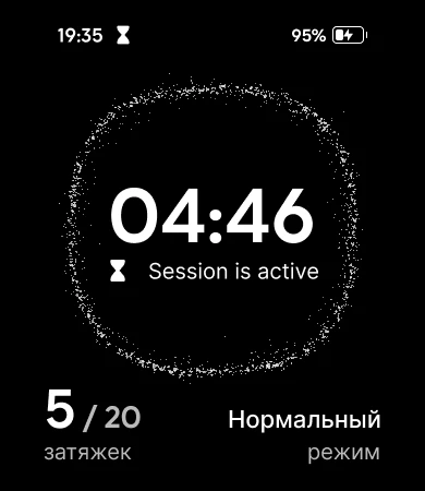 Сессия завершается по истечении времени или при достижении лимита затяжек, в зависимости от того, что наступит раньше.