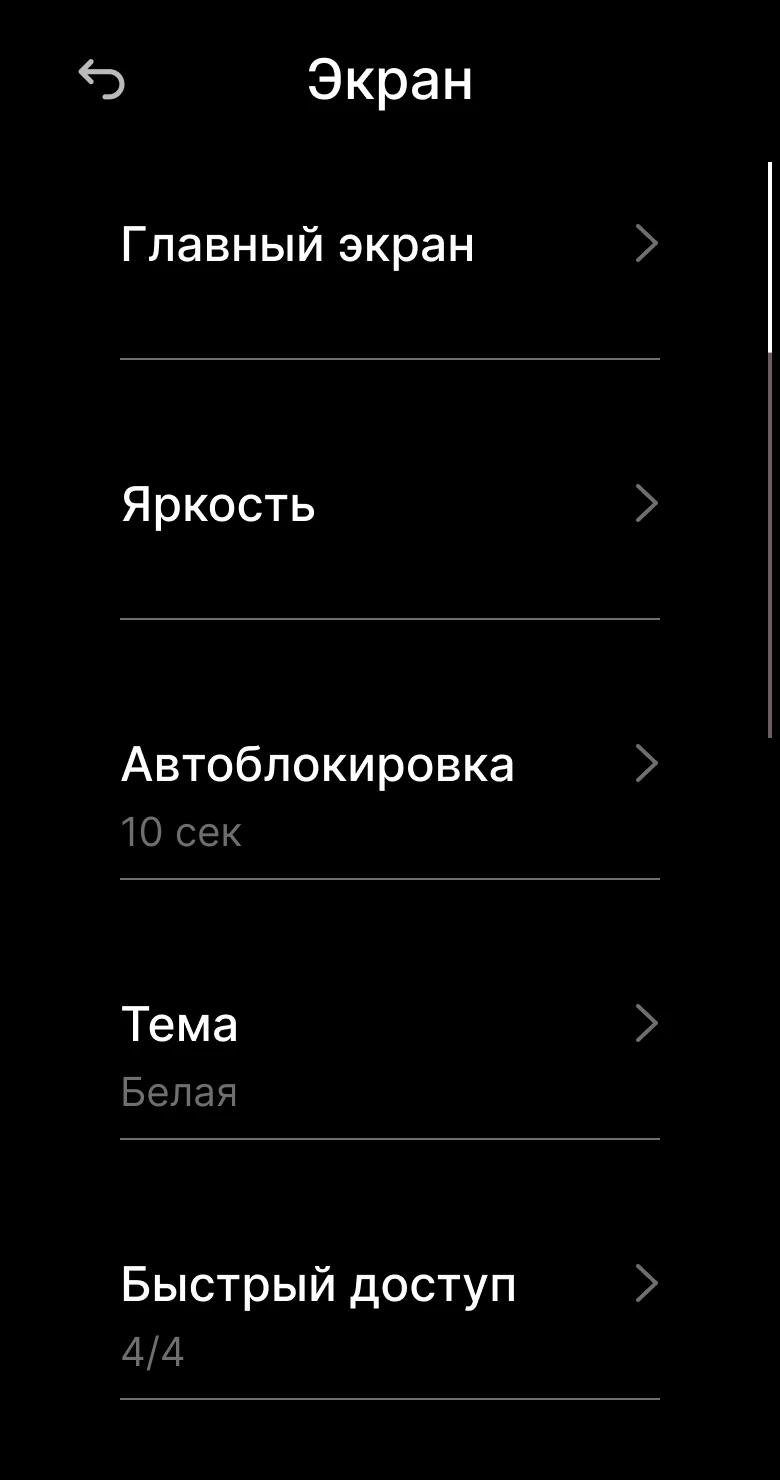 В разделе «Тема» можно выбрать цветовое оформление интерфейса устройства.